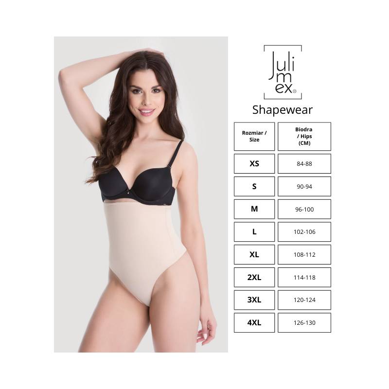 Στριγκ αδυνατίσματος με ψηλή μέση, κατασκευασμένο από λεπτό, αναπνεύσιμο υλικό που τους επιτρέπει να εφαρμόζουν τέλεια στη σιλουέτα. Αόρατο κάτω από τα ρούχα χάρη στην απρόσκοπτη, σύγχρονη τεχνολογία φινιρίσματος άκρων Julimex INVISIBLE-LINE®. Το κατοχυρωμένο με δίπλωμα ευρεσιτεχνίας σύστημα Julimex ANTI SLIDE® αποτρέπει την κύλιση και την ολίσθηση της κιλότας.Ειδικές περιοχές αδυνατίσματος διαμορφώνουν τη σιλουέτα και ισιώνουν την κοιλιά. Με γνώμονα τη γυναικεία υγιεινή, προστέθηκε ένα βαμβακερό ένθετο. Ιδανικά για ασορτί ρούχα, σας κάνουν να νιώθετε θηλυκή και σέξι.