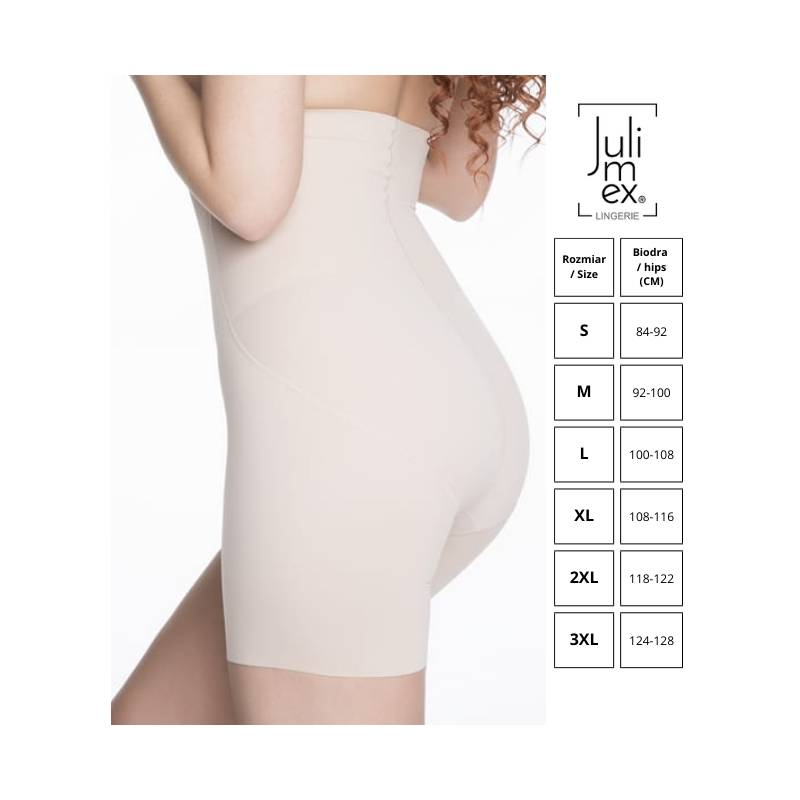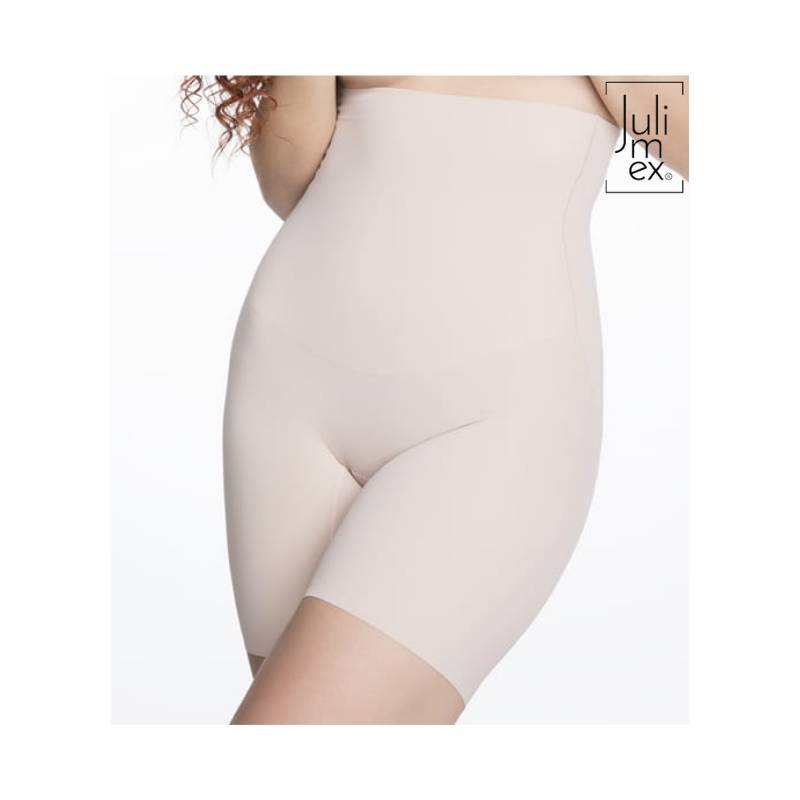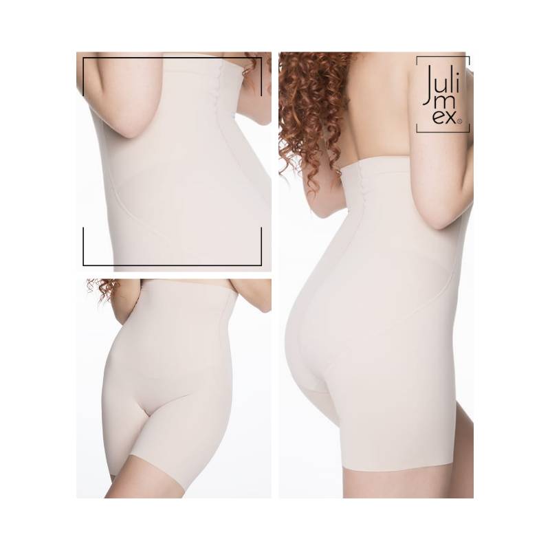 Σορτς βερμούδας αδυνατίσματος ψηλής μέσης, αόρατο κάτω από τα ρούχα χάρη στην απρόσκοπτη, σύγχρονη τεχνολογία φινιρίσματος άκρων Julimex INVISIBLE-LINE®. Το πατενταρισμένο σύστημα Julimex ANTI-SLIDE® εμποδίζει το μοντέλο να κυλήσει και να γλιστρήσει, φτάνοντας πολύ πάνω από τον αφαλό. Το κάτω μέρος των ποδιών είναι κομμένο με λέιζερ, ώστε να μην πιέζεται στους μηρούς. Οι εύκαμπτες περιοχές αδυνατίσματος εγγυώνται άνεση και υπέροχη εμφάνιση: ισιώνουν την κοιλιά, μειώνουν τον όγκο των μηρών και των γοφών, κρύβουν όλες τις πτυχές και τα ρολά. Ένα ειδικό κόψιμο στο πίσω μέρος διαμορφώνει και ανασηκώνει σωστά τους γλουτούς. Με γνώμονα τη γυναικεία υγιεινή, προστέθηκε ένα βαμβακερό ένθετο. Οι βερμούδες είναι ιδανικές για ασορτί ρούχα, επιτρέποντας σε καθεμία από εμάς να νιώθει θηλυκή και σέξι.