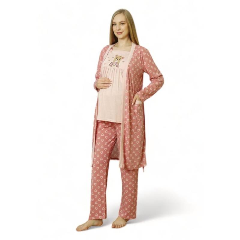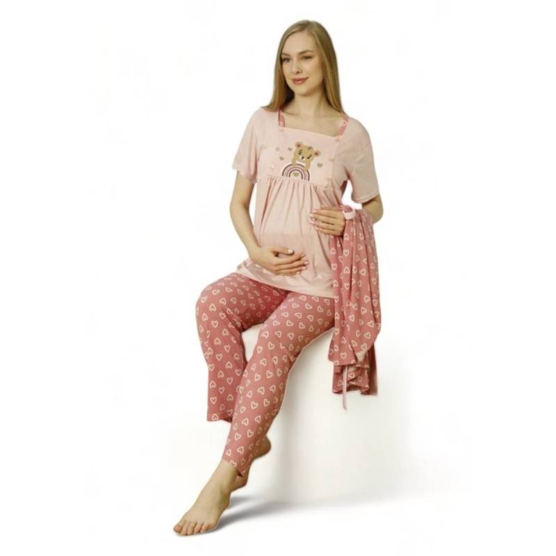 PijaMood Set Γυναικεία πιτζάμα εγκυμοσύνης και θηλασμού με ρόμπα BEAR PJMD9620 σάπιο μήλο