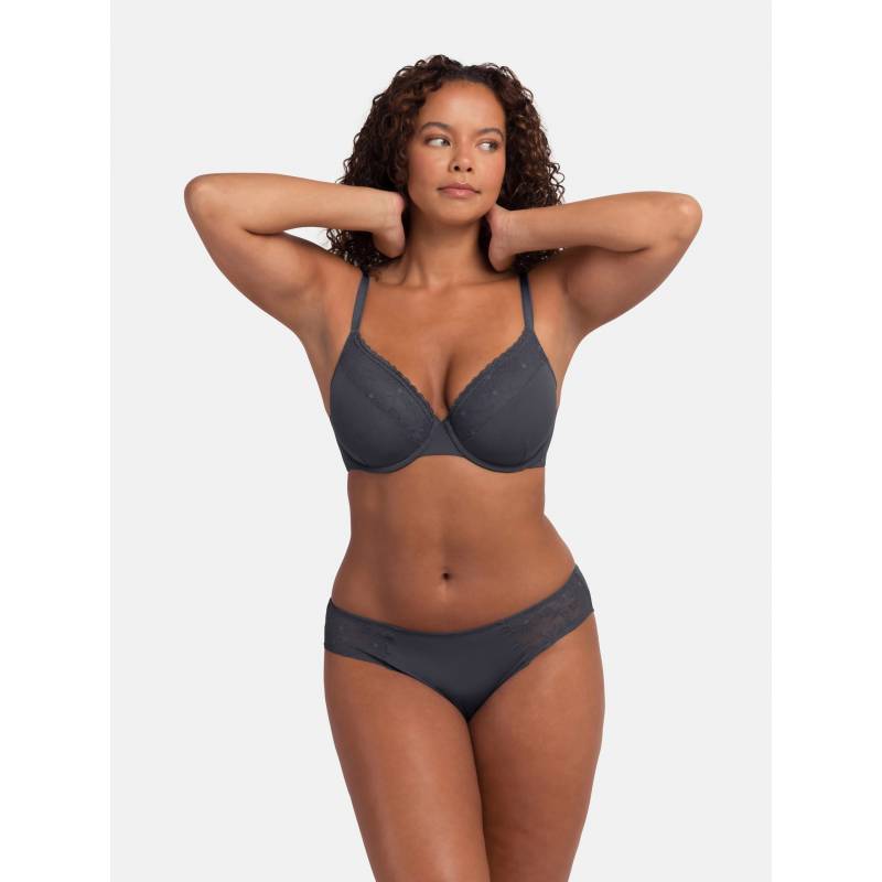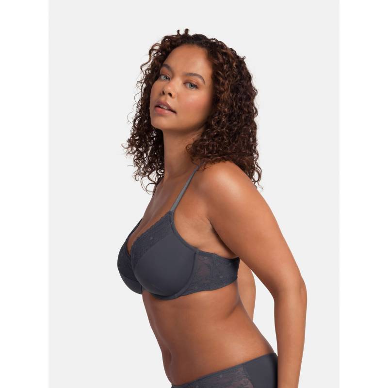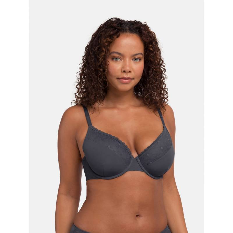 – Allover lace with lace trim at the upper cups