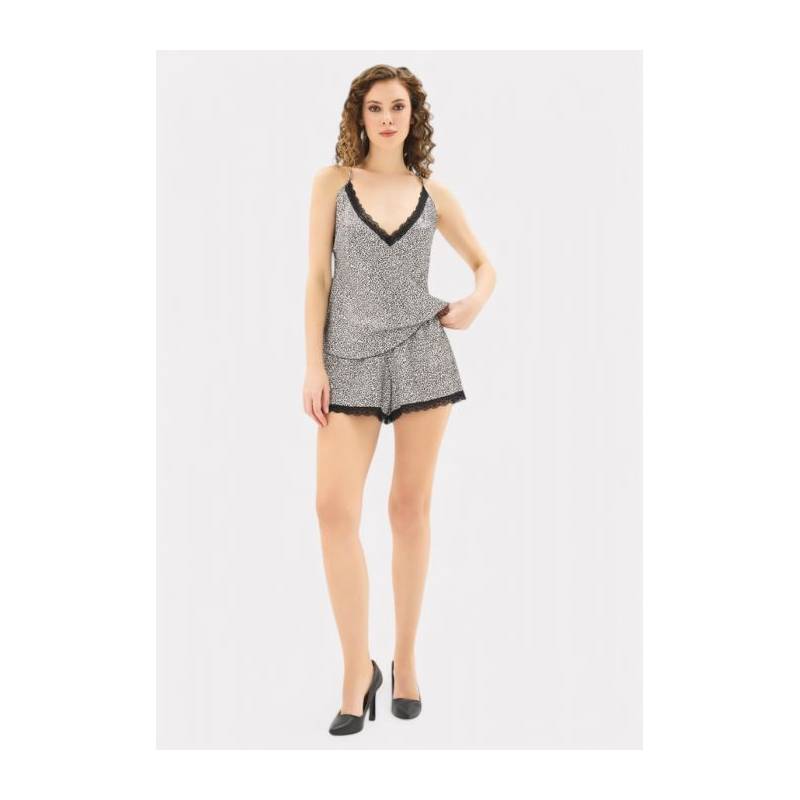 Αναδείξτε τη θηλυκότητά σας με το εντυπωσιακό babydoll σετ της MOONGIRL. Το top διαθέτει animal print σε leopard μοτίβο, ρυθμιζόμενες χιαστί τιράντες και κομψές λεπτομέρειες δαντέλας στο ντεκολτέ. Το ασορτί σορτσάκι με ελαστική μέση προσφέρει άνεση και στυλ, ιδανικό για ιδιαίτερες στιγμές ή χαλαρές βραδιές στο σπίτι.