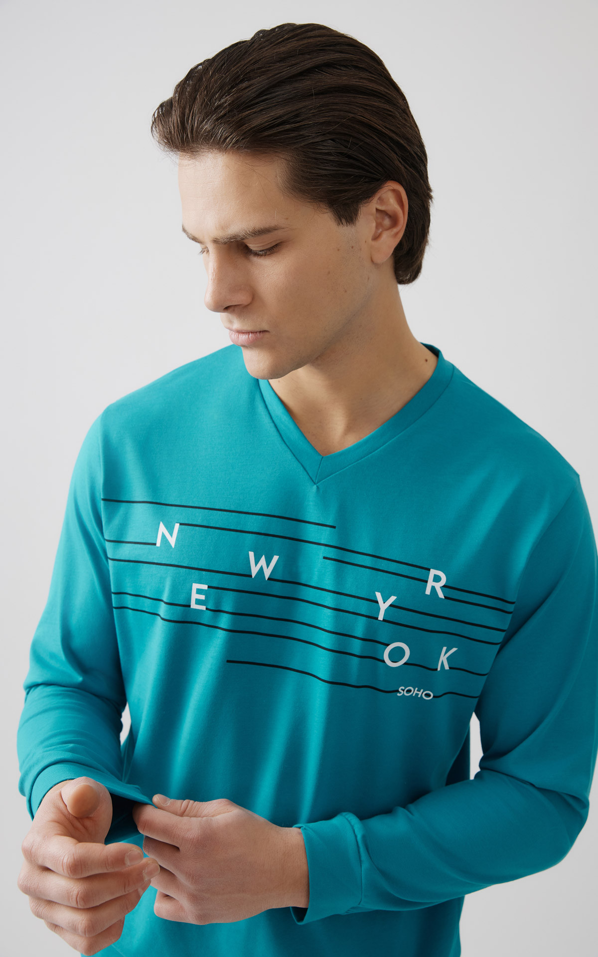 MINERVA New York Ανδρική Πιτζάμα με V λαιμόκοψη 90-71273-233 BLUE TEAL