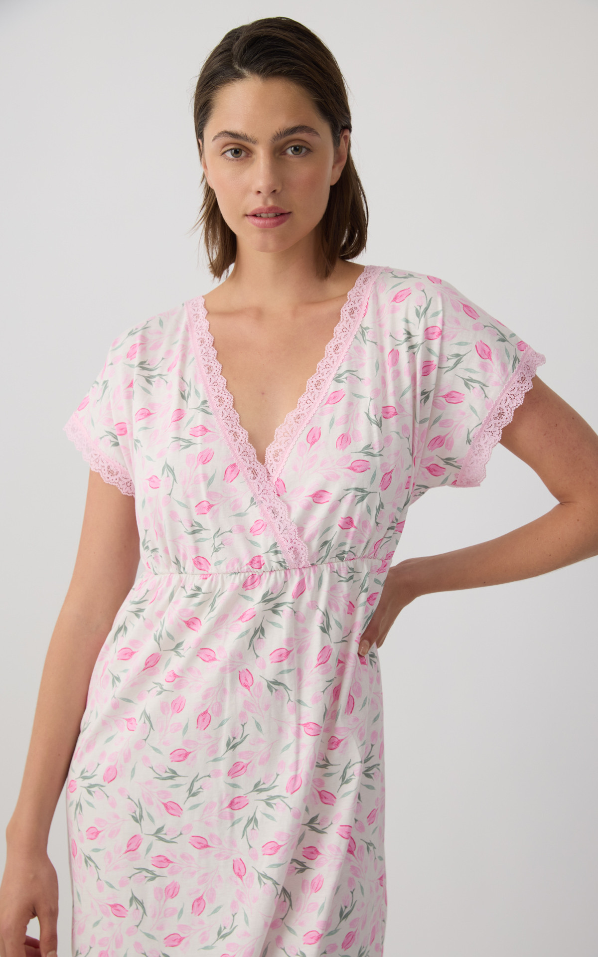 MINERVA Tulips Γυναικεία Κοντομάνικη Νυχτικιά Θηλασμού/ Εγκυμοσύνης 90-53234-366 ECRU-PINK TULIPS SS2026