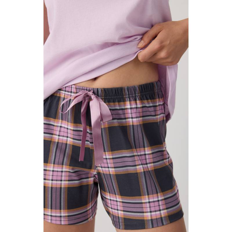 • Σετ πυτζάμας από 100% βαμβακερό ύφασμα εξαιρετικής ποιότητας που προσφέρει απαλή αίσθηση και δροσερή άνεση κατά τη διάρκεια της νύχτας. Το σετ αποτελείται από τοπ με λεπτές μπριτέλες και διακοσμητικό τύπωμα στο μπροστινό μέρος, καθώς και κοντό σορτς με λάστιχο στη μέση για άνετη και σταθερή εφαρμογή.