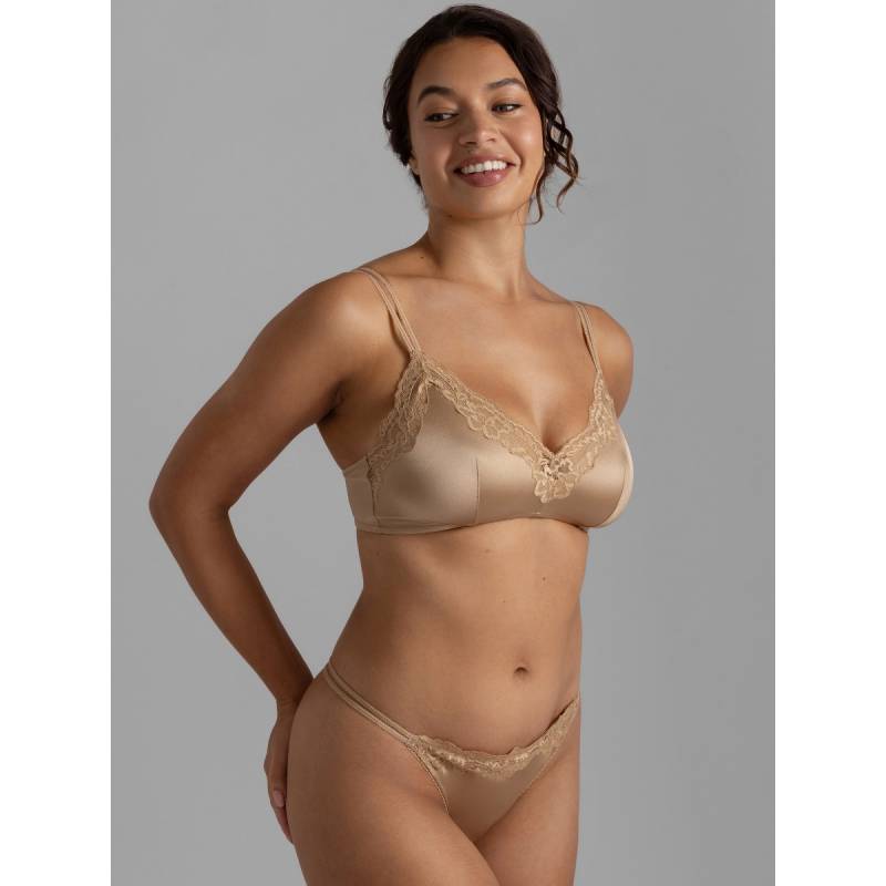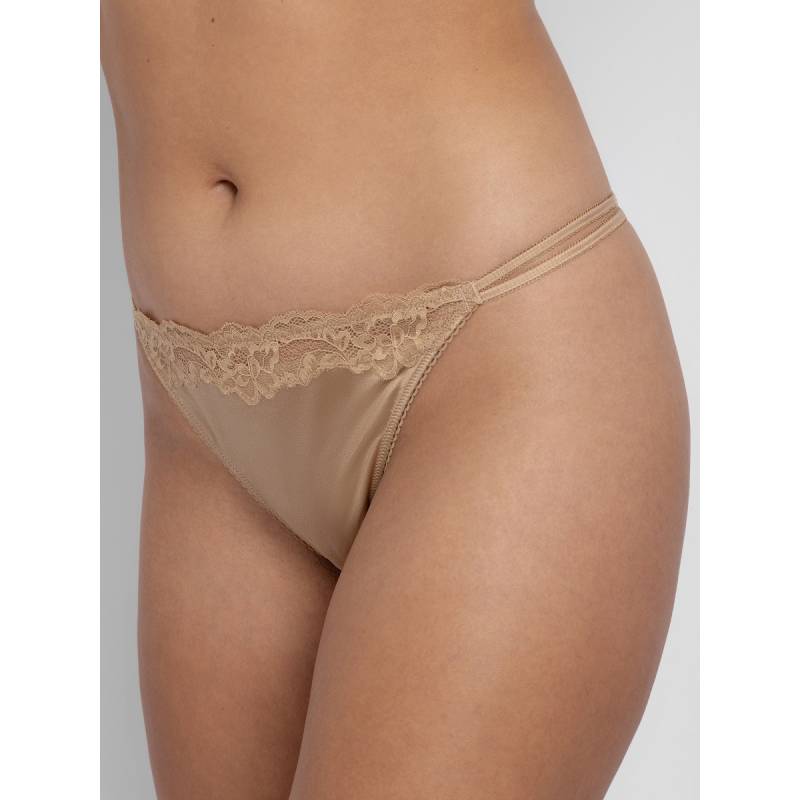 The double front straps add a modern twist, while sophisticated details like the lace-trimmed elastic bring an elevated touch. With lace accents at the front and back that echo the iconic Origins lace, this comfortable string knickers offers a daring look with full coverage where it counts, balancing confidence, comfort, and irresistible allure as a beautiful lace detail everyday thong.