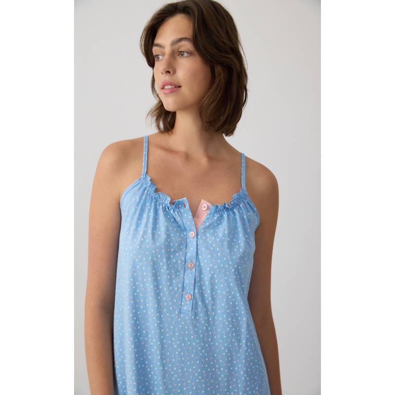 MINERVA Εμπριμέ Γυναικεία Αμάνικη Μπριτέλα Νυχτικιά Θηλασμού/ Εγκυμοσύνης 90-53232-361 CIEL/PINK-ECRU DOTS SS-2026