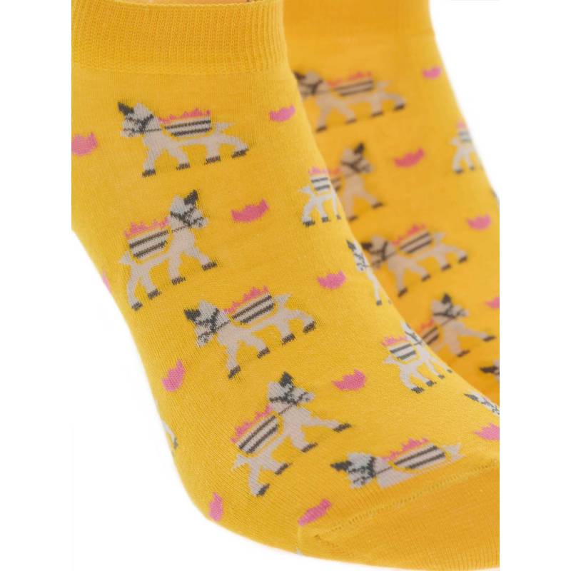 WALK Γυναικείες Βαμβακερές κοφτές κάλτσες με σχέδιο γαϊδουράκια Κίτρινο σκούρο W134-14_33