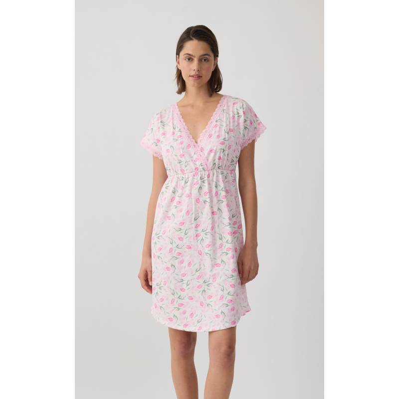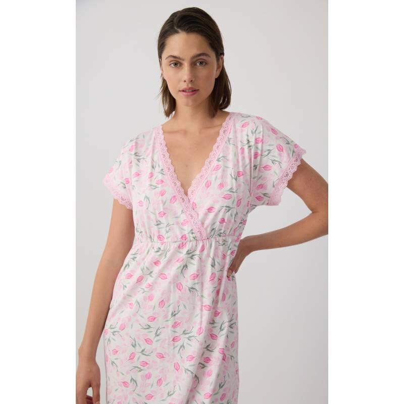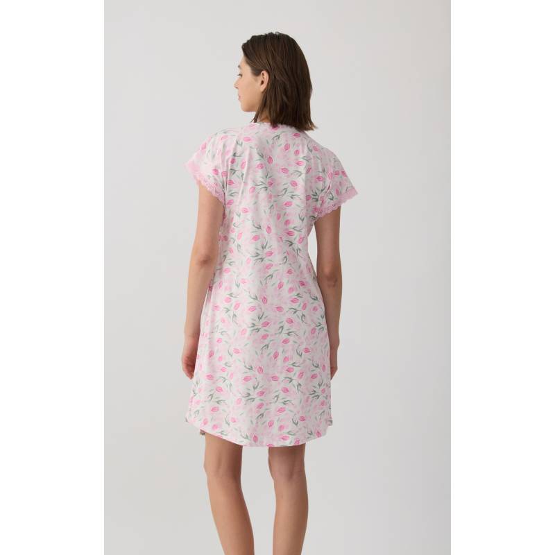 MINERVA Tulips Γυναικεία Κοντομάνικη Νυχτικιά Θηλασμού/ Εγκυμοσύνης 90-53234-366 ECRU-PINK TULIPS SS2026